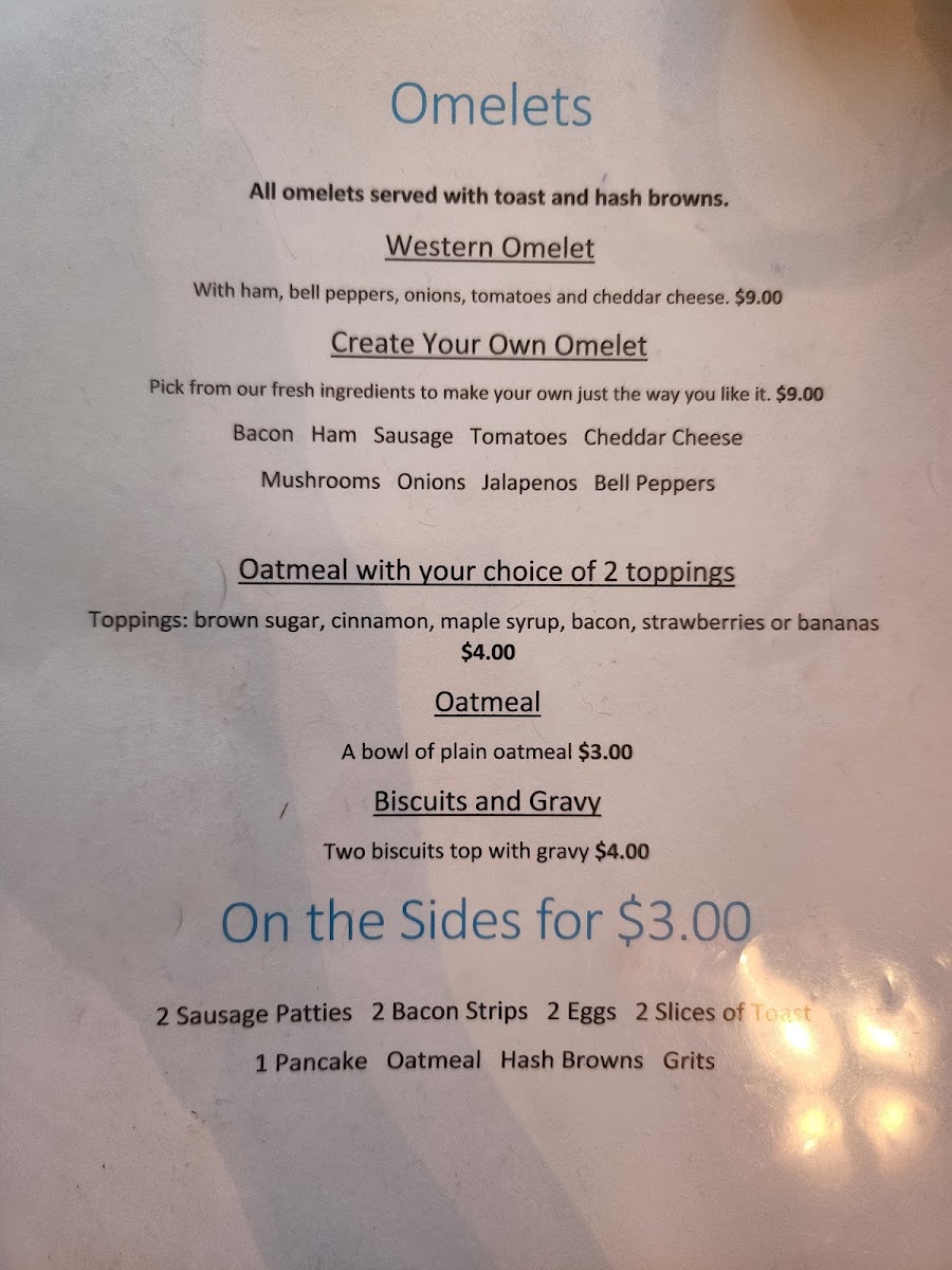 Create Your Own Omelette Includes One Meat (Additional Meat $1.50)